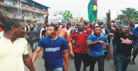 biafraMembers and supporters of the Movement for the Actualisation of the Sovereign State of Biafra shut down Port Harcourt, the Rivers State capital, demanding to break away from Nigeria on Tuesday.